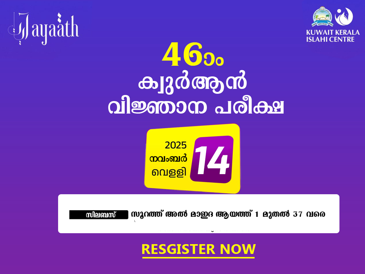 വിജ്ഞാനത്തിലൂടെ വിശ്വാസ വിമലീകരണം സാധ്യമാക്കിയ, സന്തോഷവാർത്തകളിലൂടെ.. താക്കീതുകളിലൂടെ... മനുഷ്യ മനസ്സിനെ പക്വമാക്കിയ സ്രഷ്ടാവിന്റെ അതുല്ല്യ ഗ്രന്ഥമായ പരിശുദ്ധ ഖുർആനിന്റെ
